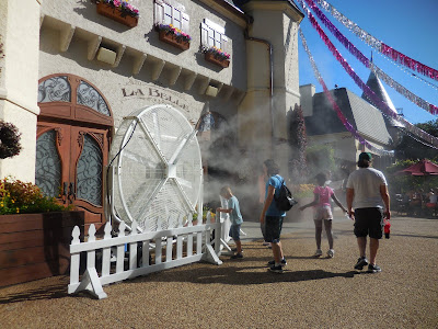 concerns, there are water rides and misters in some spots in the park. Stores